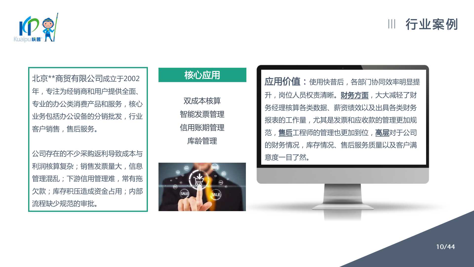 適用:產(chǎn)品分銷、零售行業(yè)、系統(tǒng)集成、行業(yè)銷售等各類型商貿(mào)企業(yè)。